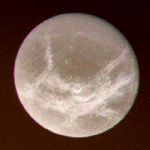 dunklem Hintergrund zu erkennen, mit wenigen sichtbaren Kratern
