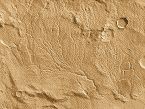 An vielen Stellen auf Mars sind Erosionen inklusive Spuren großer Überschwemmungen und kleiner Flußsysteme (rechts) deutlich auszumachen. Zu bestimmter Zeit befand sich sicher etwa Flüssiges an der Oberfläche. Es könnte große Seen oder sogar Ozeane gegeben haben; die Beweise dafür wurden von einigen netten Aufnahmen der Mars Global Surveyor von geschichtetem Gelände sowie durch die mineralogischen Resultate des MER Opportunity-Rovers erhärtet. Vieles deutet auf ein Vorkommen flüssiger Episoden in der Vergangenheit hin, diese scheinen aber nur für kurze Zeit Bestand gehabt zu haben und sehr lang her zu sein; das Alter der Erosionskanäle wird auf ungefähr vier Milliarden Jahre geschätzt. Dennoch zeigen Bilder der Mars Express-Mission etwas, das wie ein gefrorener See rscheint, der erst kürzlich (vor etwa vier Millionen Jahren) flüssig gewesen zu sein scheint. Eine Bestäigung dieser Interpretation wäre in der Tat eine großartige Sache (die Valles Marineris wurden NICHT von fließendem Wasser hervorgerufen. Sie entstanden vielmehr durch Strecken und Brechen der Kruste in Zusammenhang mit der Entstehung der Tharsis Hochebene)!