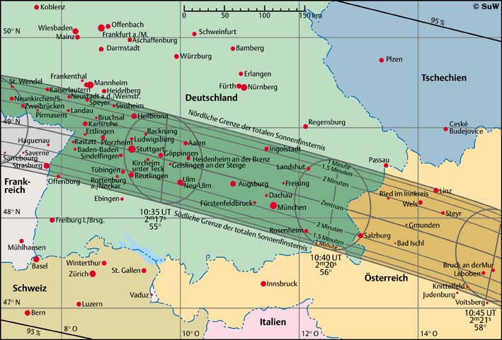 waren als in der Mitte der Kernschattenzone, aber dennoch, gemessen an der Gesamtdauer des