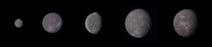 Voyager 2 entdeckte zu den fünf größeren, bereits bekannten zehn weitere kleine Monde. Es ist wahrscheinlich, daß sich noch weitere winzige Satelliten im Bereich der Ringe befinden.